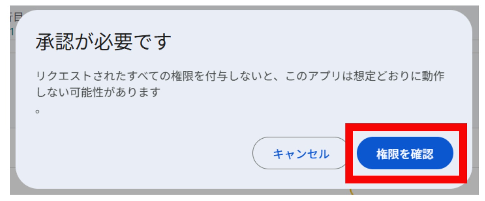 「権限を確認」ボタンをクリックします。
