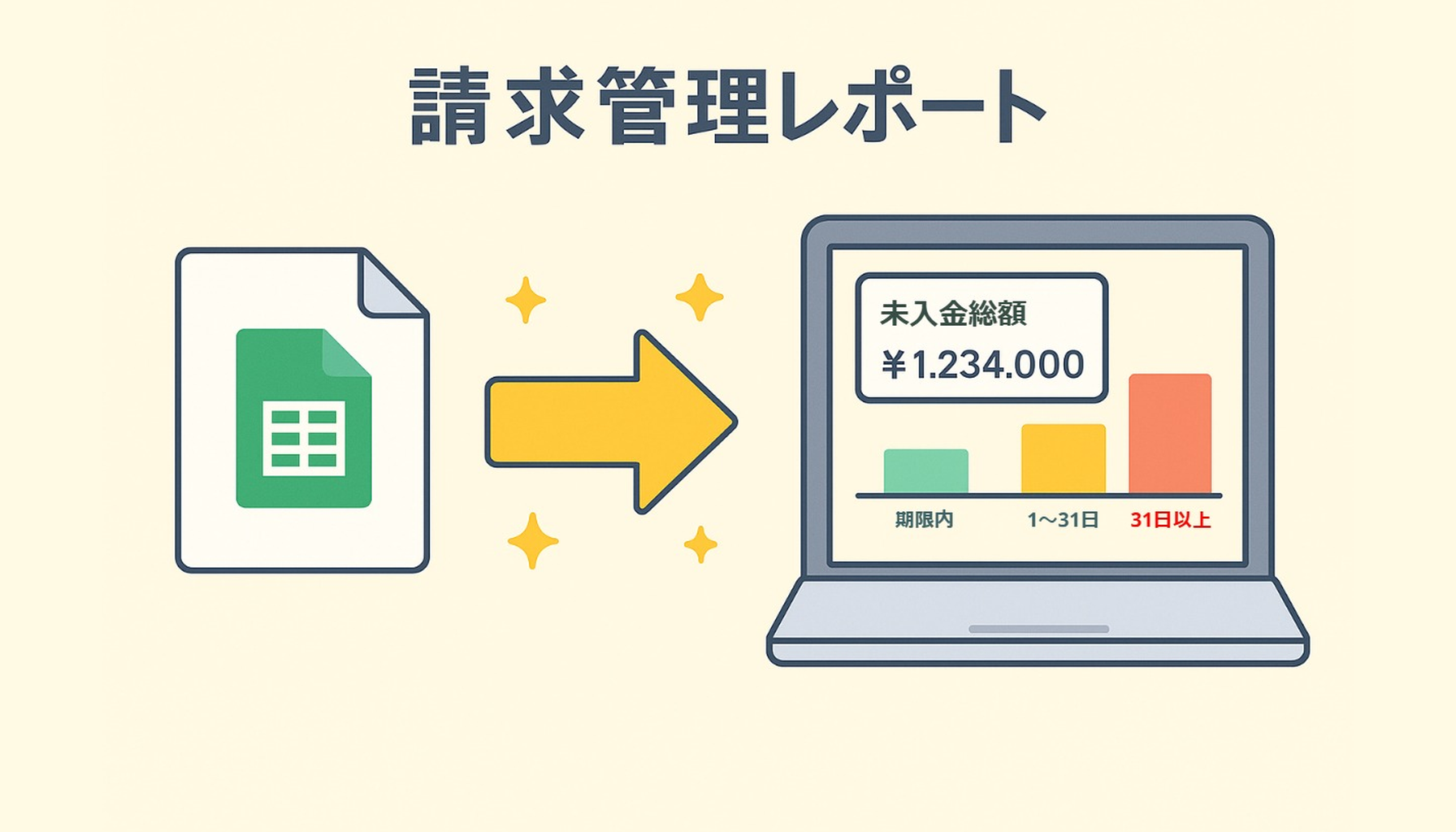 この記事では、すでにお使いのスプレッドシート(請求管理台帳)をデータ元として、Looker Studioで「リアルタイム請求管理レポート」を構築する方法を、具体的な手順と関数例を交えて解説します。